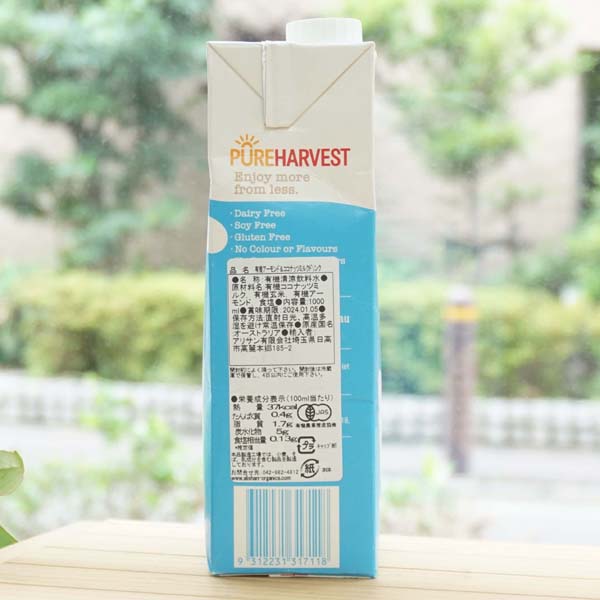 砂糖や乳化剤等を添加していない、ココナッツミルクとライスミルクから作られた穀物飲料。