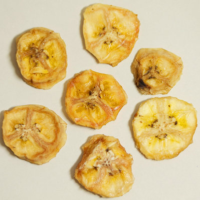 完熟バナナを輪切りにし、トレイで乾燥させたスリランカ産バナナチップス。