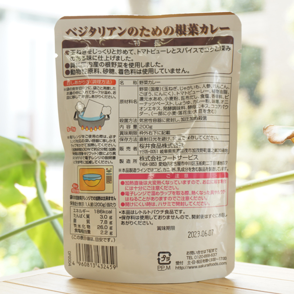 国産野菜で作った ベジタリアンのための根菜カレー(中辛)/1人前【桜井食品】2