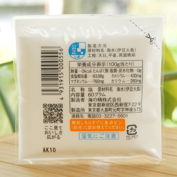 【原料名】海水(伊豆大島産)工程:天日、平釜、高温焼成