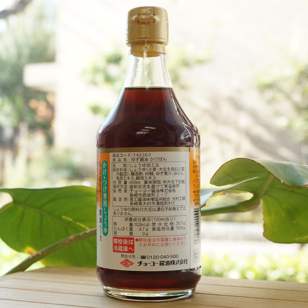 【原料名】しょうゆ(小麦、大豆(遺伝子組換えでない)を含む)(国内製造)、醸造酢、砂糖 、ゆず果汁 、みりん、魚貝エキス、酵母エキス