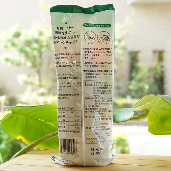 【原料名】 有機トマト(アメリカ産他)、麦芽水あめ、醸造酢(有機りんご酢、米酢)、食塩(シママース)、有機たまねぎ(国内産)、有機にんにく(国内産)、香辛料