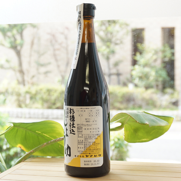 ヤマヒサの蔵に足を踏み入れると、樽と樽が密集して配置され、奥行きのある蔵の向こう側まで樽が整然と並んでいます。 その数は約120本。 蔵の中には24時間環境音楽が流れています。(民謡のような音楽) この樽の中で発酵・熟成に2年程かけて熟成が進みます。 通常の醤油づくりでは4ケ月から6ケ月かけるものがほとんどですが、ヤマヒサでは天然醸造での醤油づくりをしています。 こうした製法については、そこに住みついた麹菌の働きと、この道50有余年の職人の、経験とカンが遺憾なく発揮されているのです。 ヤマヒサの醤油造りのスタンスは 「醤油造りにおいては生産者であるが、他方では消費者である。これは将来においても変わることはない。」 と植松勝太郎社長。本物の味を追求しています。 最後に植松勝太郎社長からJAS法の話を聞きました。 日本のJAS法では、醤油の良し悪しを決めるのに『チッ素』分だけで等級を決めるそうです。 なので、4ケ月から6ケ月でできる脱脂加工大豆を原料に速醸法でしあげた醤油もどきに、イオン交換した塩やカラメル色素・甘味料・保存料・化学調味料いろいろな物を添加してできた偽りの醤油に『超特選』と言う等級を与えられます。 この等級には疑問を感じます。 ヤマヒサは、国産大豆・国産小麦・ミネラル豊富な塩のみで、長期醸造してJAS法の特選レベルまでなっています。 天然醸造と速醸法で仕上げた醤油を同じ土俵に乗せてもいいものでしょうか?