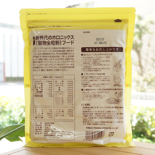 ■独自に開発したホロニックテクノロジー(焙煎装置特許)によって玄米を高熱焙煎し、25ミクロンという微粉末化していますので、そのまま飲食でき、消化吸収がよく、玄米に含まれる多様なビタミン・ミネラルが手軽に摂取できます。