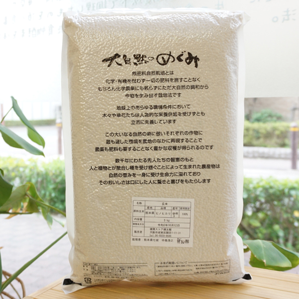 無肥料無農薬「大自然のめぐみ」ヒノヒカリ玄米/5kg 令和7年度産2