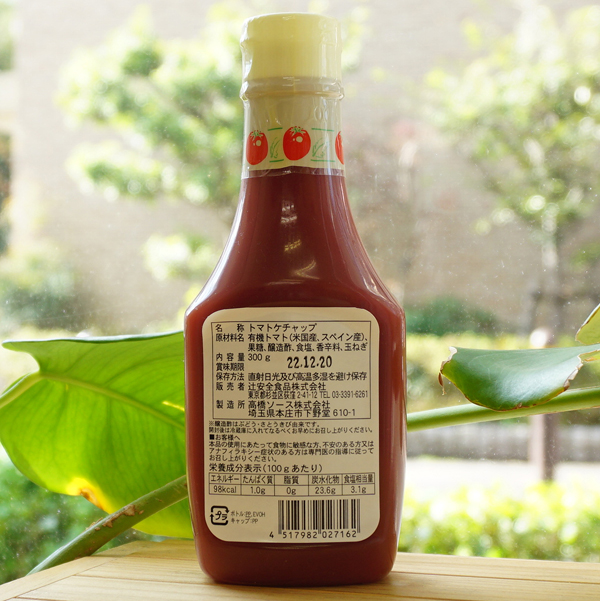 【原料名】有機トマト、果糖(てんさい糖由来)、醸造酢(ぶどう・さとうきび由来)、食塩、香辛料、たまねぎ