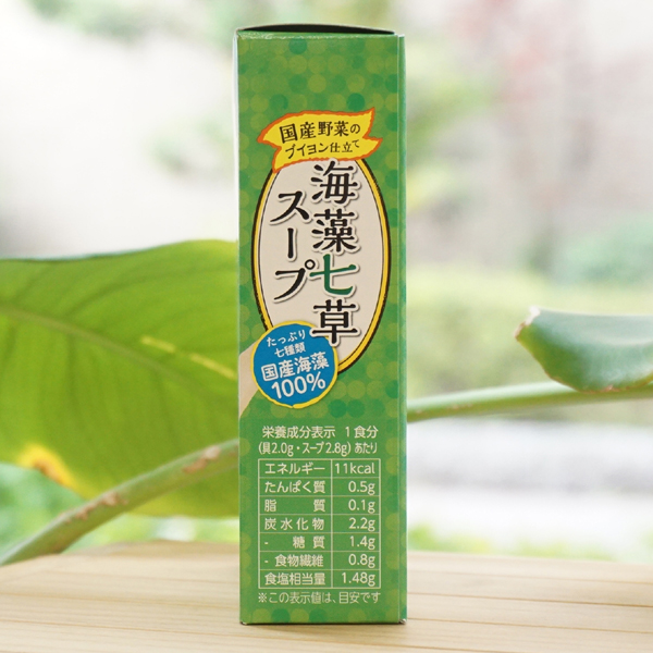 彩り豊かな国産の海藻7種類を国産野菜のブイヨンでいただく洋風スープです。