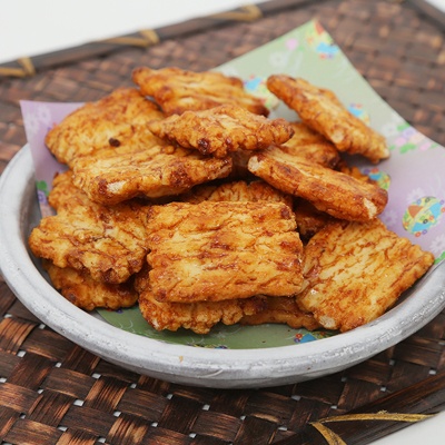 【原料名】もち米(佐賀)、醤油(大豆、小麦)、米油、砂糖、みりん、水飴、澱粉、食塩、鶏がら、鰹節、唐辛子、昆布、煮干、乾椎茸、レモン
