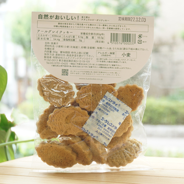 【原料名】小麦粉(埼玉産)、粗糖(鹿児島産)、有機パーム油(コロンビア産)、なたね油(西オーストラリア産)、有機アールグレイティ(スリランカ産)
