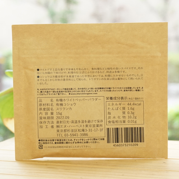 有機ホワイトペッパーパウダー/15g【メール便発送】【エヌハーベスト】 ORGANIC WHITE PEPPER POWDER1