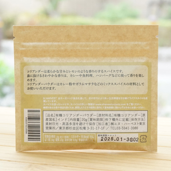有機コリアンダーパウダー/20g【メール便発送】【エヌハーベスト】 ORGANIC CORIANDER POWDER2 有機コリアンダーパウダー/20g【メール便発送】【エヌハーベスト】 ORGANIC CORIANDER POWDER3