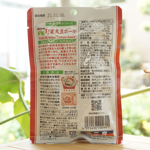 5141m 野菜大豆ボール(トマトソース)/6個入【メール便発送】【三育フーズ】 大豆ミートで作りました