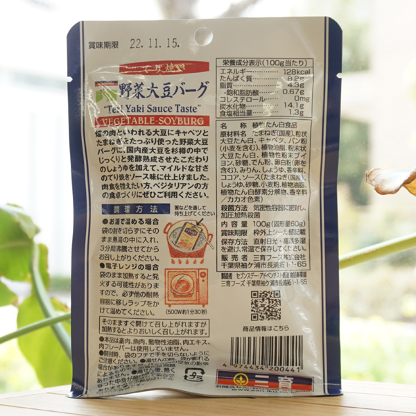 野菜大豆バーグ(てり焼き)/1人前【メール便発送】【三育フーズ】 大豆ミートで作りました2