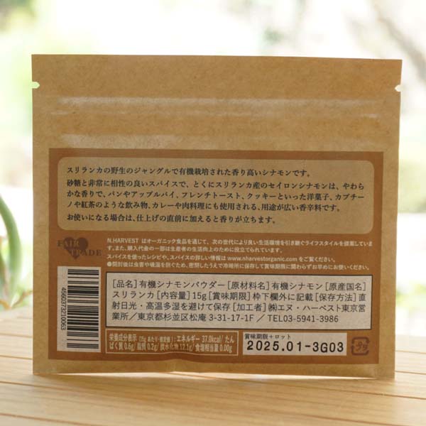 有機シナモンパウダー/15g【エヌハーベスト】 ORGANIC CINNAMON POWDER1