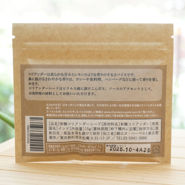 有機コリアンダーシード/15g【エヌハーベスト】 ORGANIC CORIANDER SEEDS2 有機コリアンダーシード/15g【エヌハーベスト】 ORGANIC CORIANDER SEEDS3