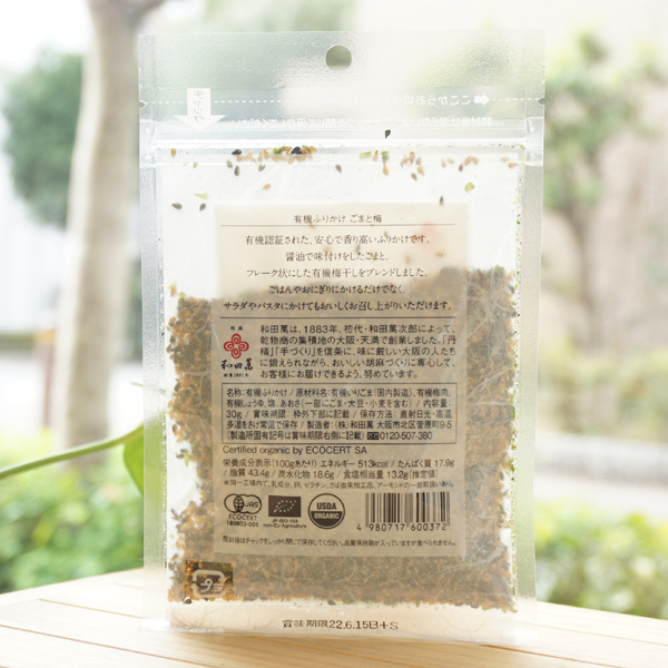 【原料名】有機いりごま、有機梅肉、有機しょうゆ、塩、あおさ