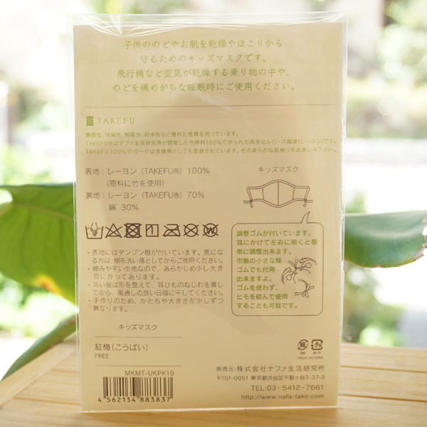 竹布 キッズマスク(紅梅)【メール便発送】【ナファ生活研究所】 TAKEFU2 竹布 キッズマスク(紅梅)【メール便発送】【ナファ生活研究所】 TAKEFU3