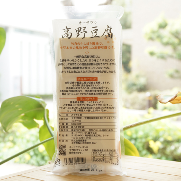 【取扱説明】貴重な消泡剤・膨軟剤(重曹)不使用の高野豆腐です。