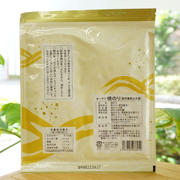オーサワ焼のり(鹿児島出水産)/全形10枚【メール便発送】1