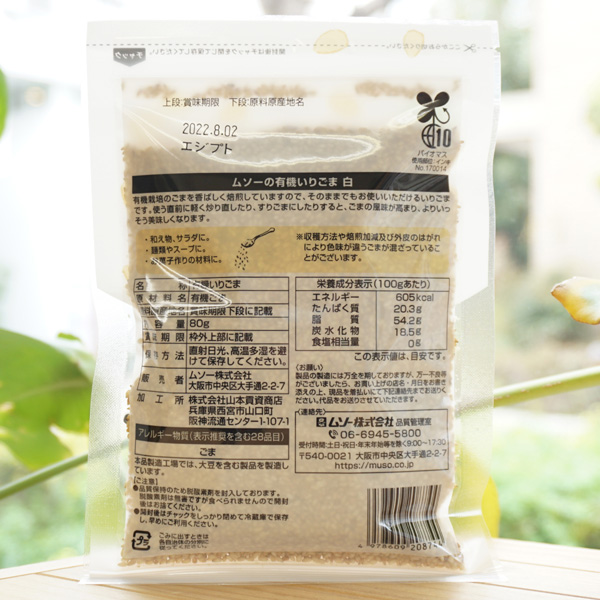 いりごま(白)/80g【メール便発送】【ムソー】 有機胡麻をていねいに香ばしく焙煎した2