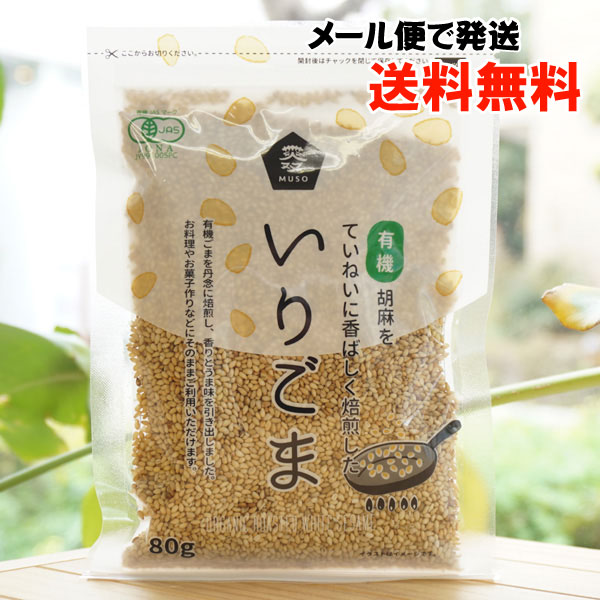 20874m いりごま(白)/80g【メール便発送】【ムソー】 有機胡麻をていねいに香ばしく焙煎した