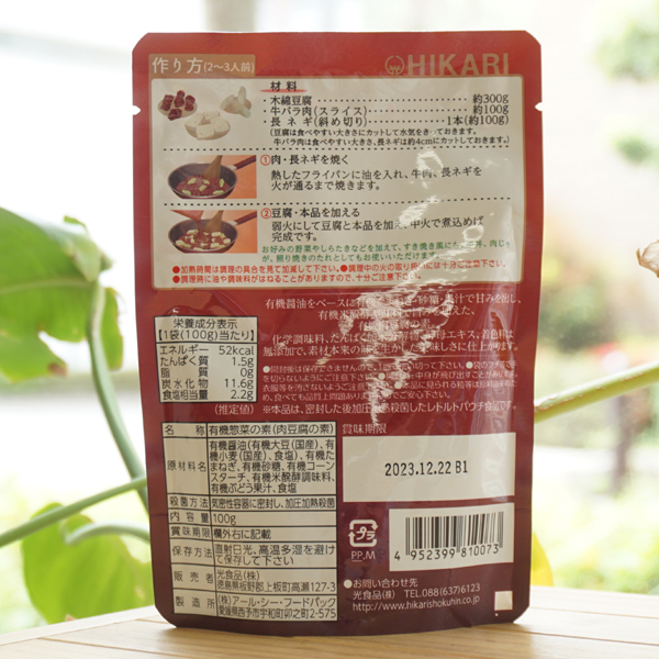 ヒカリ 有機惣菜の素 有機肉豆腐の素/100g(2〜3人前)【メール便発送】【光食品】2
