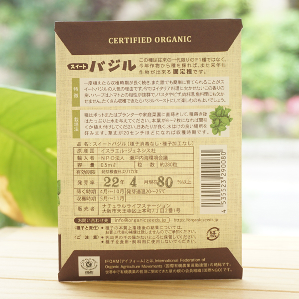 スィートバジル(有機種子)/約280粒【メール便発送】【ナチュラルライフステーション】1