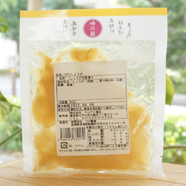 【原料名】しょうが(国内産)、漬け原材料[米酢、粗糖、食塩(伯方の塩)]