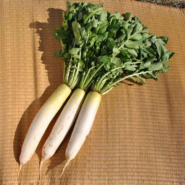 ■数系統の青首ダイコンの後代固定系統と宮重系の固定種の交配種を素材とし、富士山麓の火山灰土壌にて育成した固定種です。