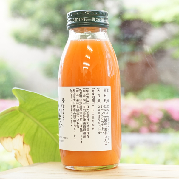 【原料名】にんじん(新潟産)、りんご(長野産)、レモン(愛媛産)、梅エキス(群馬・埼玉産)