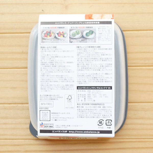 □レクタングルコンテナ(XS)/グレー【エンバランス】 EMBALANCE RECTANGLE CONTAINER1