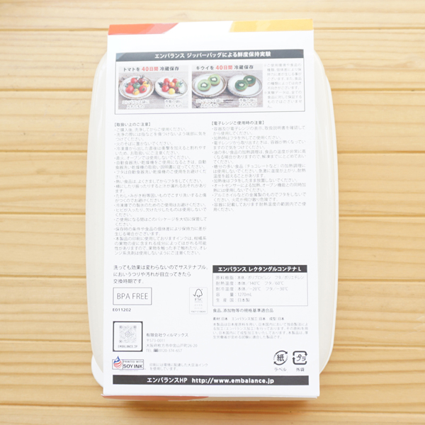 □レクタングルコンテナ(L)/ホワイト【エンバランス】 EMBALANCE RECTANGLE CONTAINER1