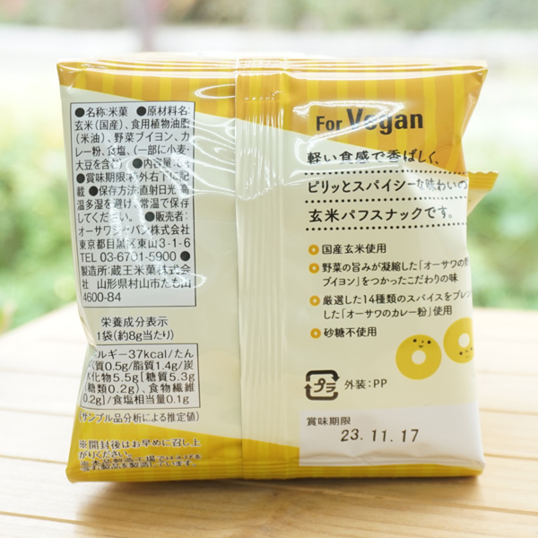 オーサワの玄米パフスナック(カレー味)/32g(8g×4P) For Vegan1
