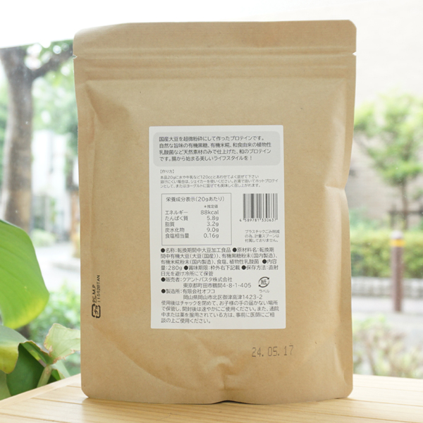 国産有機 まるごと大豆プロテイン(プレーン)/280g【メール便発送】【クアントバスタ】2