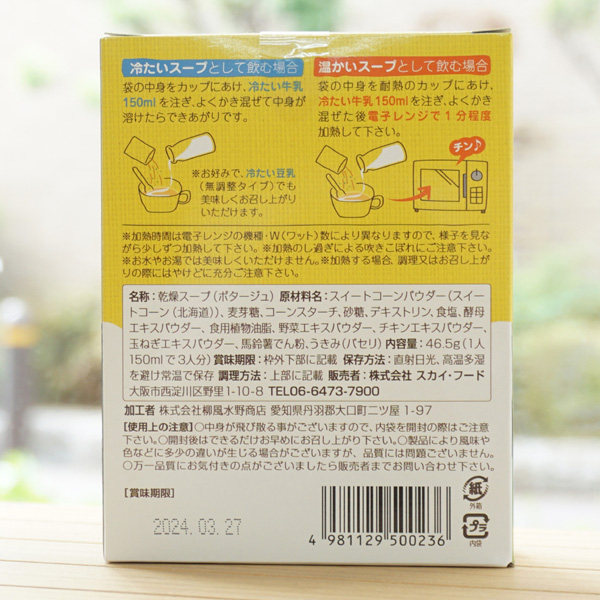 ミルクでつくる クリーミーコーンポタージュ/3食(46.5g)【スカイフード】2 ミルクでつくる クリーミーコーンポタージュ/3食(46.5g)【スカイフード】3