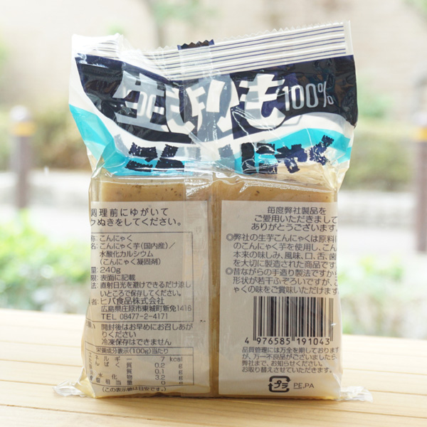 【原料名】こんにゃく芋(国内産)/水酸化カルシウム(こんにゃく凝固剤)