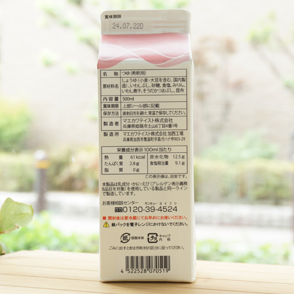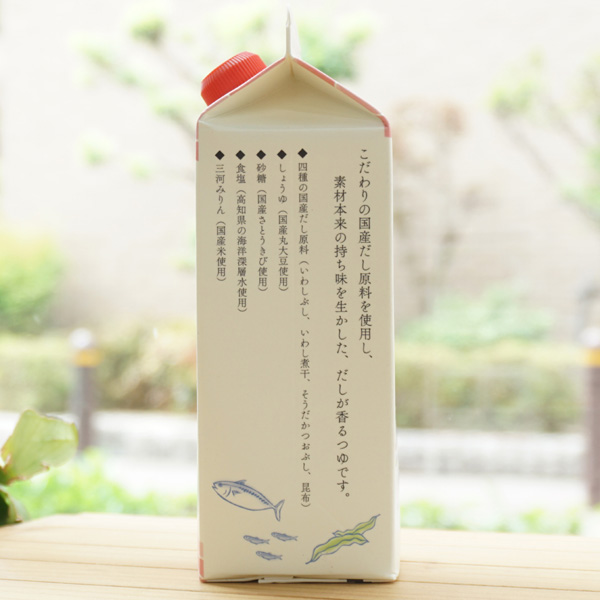 【原料名】しょうゆ(小麦・大豆を含む、国内製造)、いわしぶし、砂糖、食塩、みりん、いわし煮干、そうだかつおぶし、昆布