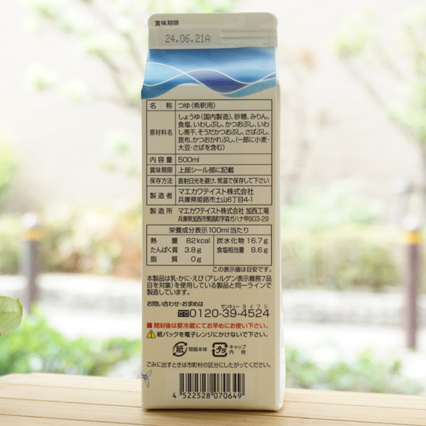 【原料名】しょうゆ(国内製造)、砂糖、みりん、食塩、いわしぶし、かつおぶし、いわし煮干、そうだかつおぶし、さばぶし、昆布、かつおかれぶし、(一部に小麦・大豆・さばを含む)