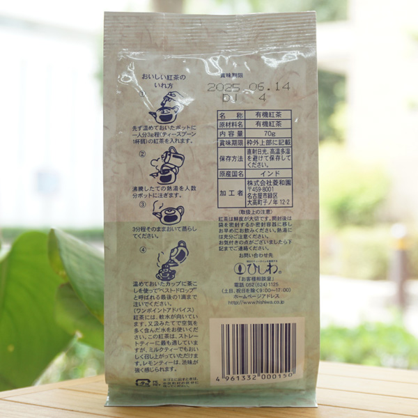 19-118 有機ダージリン紅茶(リーフティー)/70g【ひしわ】