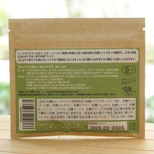 有機栽培のスパイスならではの、味と香りをお楽しみ下さい。