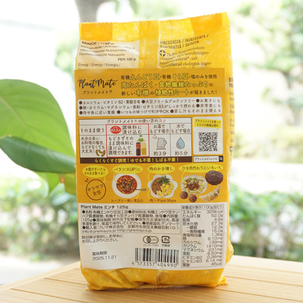 Plant Mate(有機植物性ミート)ミンチ/125g【プレマ】 PROTEIN CHUNKS VEGAN2 Plant Mate(有機植物性ミート)ミンチ/125g【プレマ】 PROTEIN CHUNKS VEGAN3