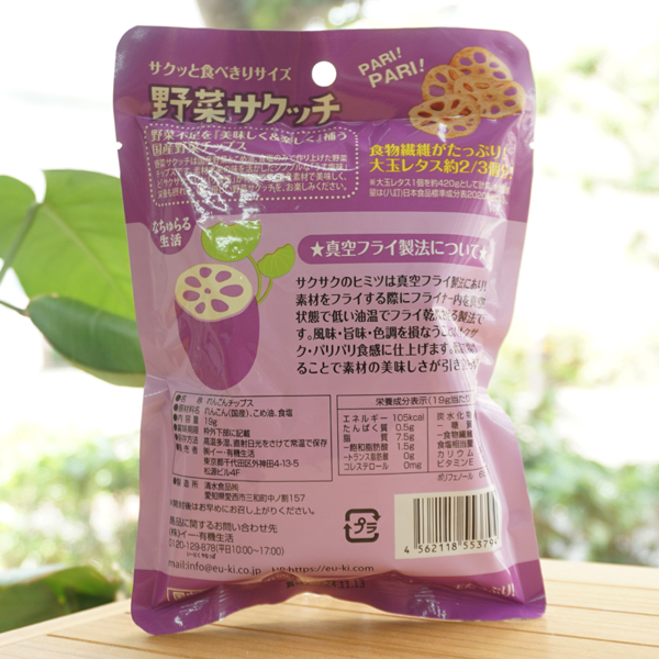 【原料名】れんこん(国産)、こめ油、食塩(天日塩)
