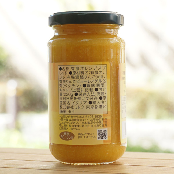 【原料名】有機オレンジ(イタリア)、有機濃縮りんご果汁、有機りんごピューレ/ ゲル化剤[ペクチン(シトラス由来)]