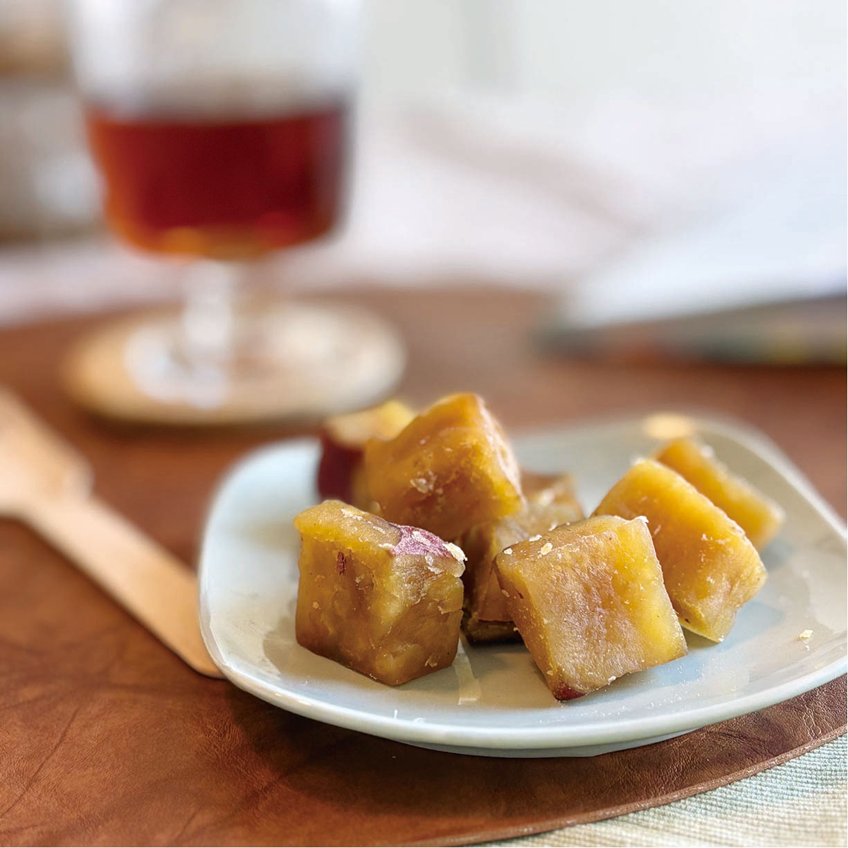 ■ひと口サイズの鳴門金時をほくっと蒸しあげ、蜜に漬け込んだ後、仕上げにオーブンで香ばしく炙りました