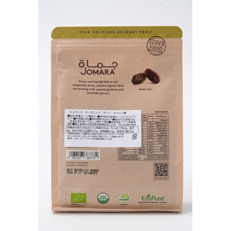 ジョマーラ オーガニックデーツ キドゥリ種 /400g【出光商会】1