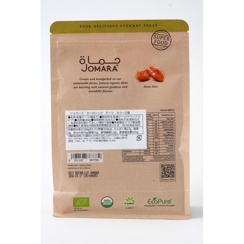 ジョマーラ オーガニックデーツ カラース種 /400g【出光商会】1