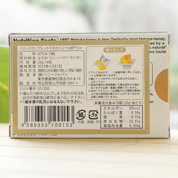 マヌカハニーUMF15+(はちみつ飴) /23g(6粒)【Honey Droplet】 MANUKA UMF15+2 マヌカハニーUMF15+(はちみつ飴) /23g(6粒)【Honey Droplet】 MANUKA UMF15+3