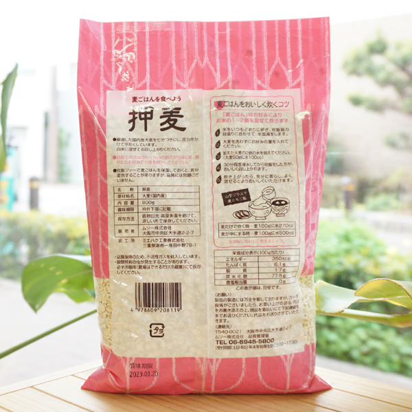 ■良質の国内産大麦を、自然の栄養素を損なわないように七分づきにし、圧力をかけて平たくしてあります。