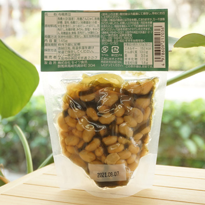 ■国内産有機大豆に有機こんにゃくと昆布を加えた煮豆です。