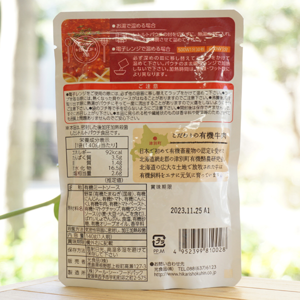 ■日本初、有機JAS認定(愛媛県有機農業研究会)のミートソースです。